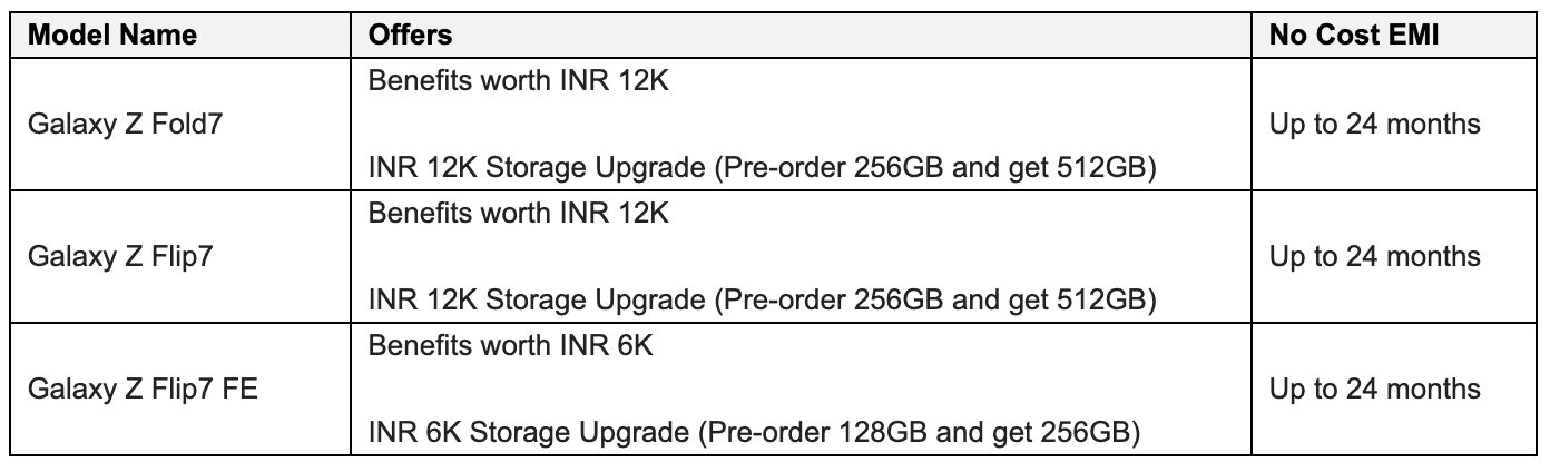 Samsung has announced that pre-orders for all three devices — Galaxy Z Fold7, Galaxy Z Flip7, and Galaxy Z Flip7 FE — are now live on Samsung.com, Amazon, Flipkart, and retail stores across India.