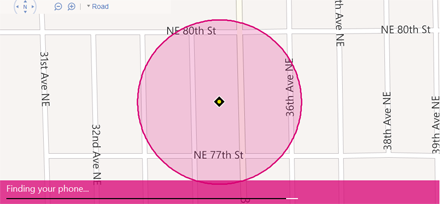Point to the phone in the upper-right corner, and click Find My Phone. If you’re prompted, sign in with the same Microsoft account you used to sign in on your phone.
