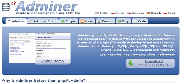 Read More details about Adminer on Wikipedia