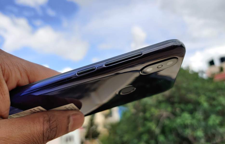 Design of Coolpad Cool 5 is like any regular budget mobile android phones with the dewdrop or waterdrop thin-bezel screen in the below 7-8K price segment. The Coole 5 has a glossy back panel with black and violet gradient colours. The colour shades on the rear don’t look bad but it would be very difficult to keep the rear panel clean since it’s getting fingerprint marks as soon as you touch the panel. You might consider using the plastic case instead.